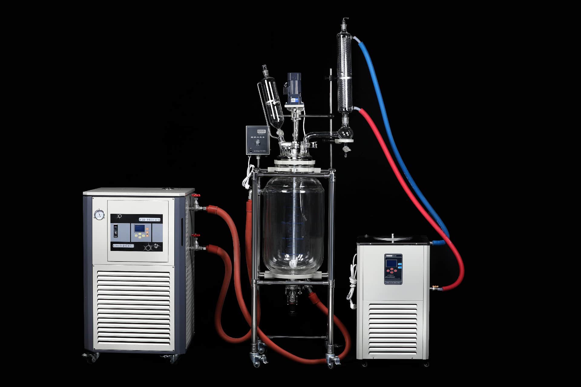 設備組成:高低溫一體機+雙層玻璃反應釜+低溫冷卻液循環泵